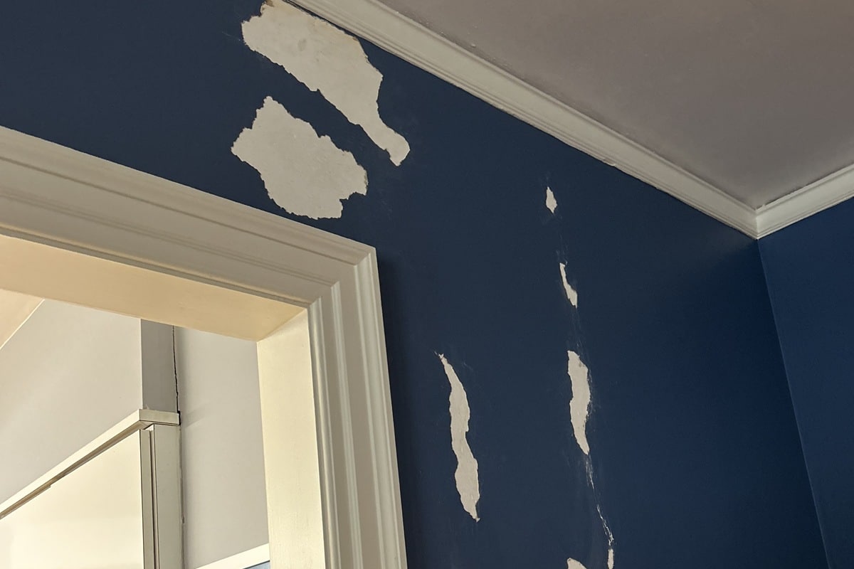 This one is more common than people think. If a wall was recently washed or patched and the surface was not completely dry before painting started, the paint will not bond correctly. Even a small amount of dampness can cause the paint to lift and peel within weeks.